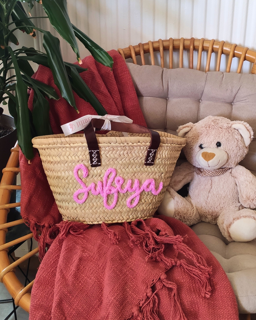 Panier - Petit Panier Marocain En Osier Personnalisé Pompons Et Prénom