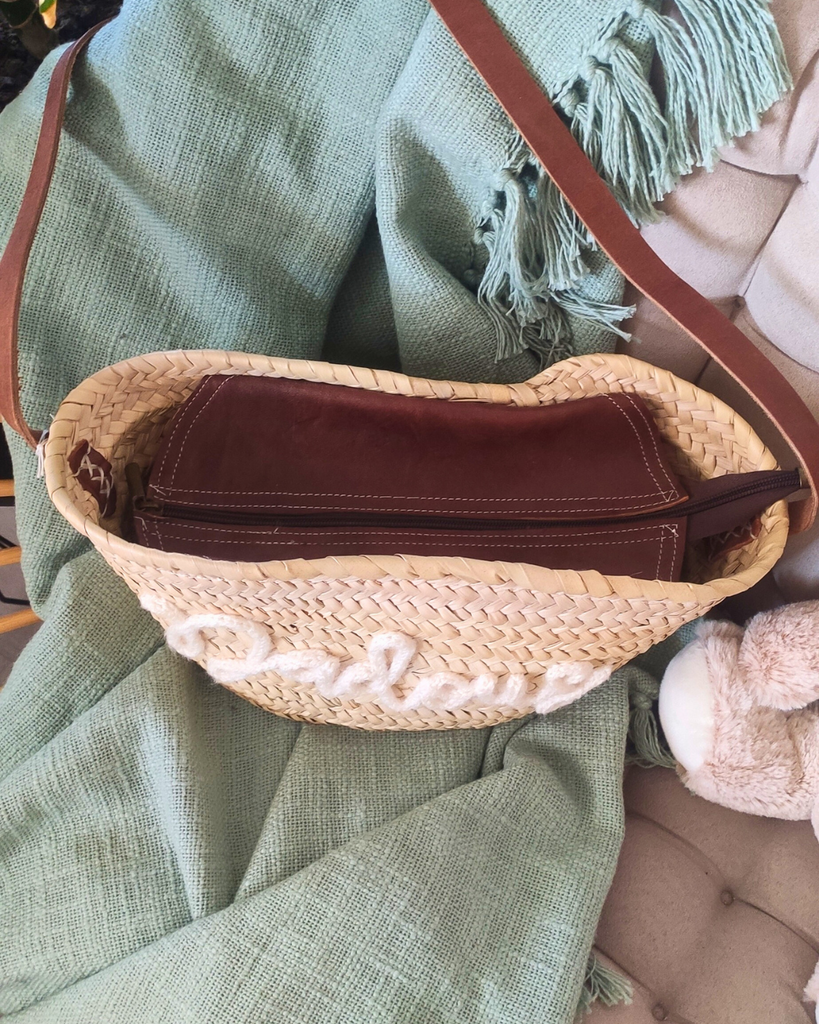 Ajoutez une touche d'élégance artisanale à votre quotidien avec ce superbe sac panier en feuilles de palmier, doté d'une bandoulière réglable et d'une fermeture en cuir. Parfait pour vos sorties, ce sac est un accessoire de mode incontournable, alliant style, fonctionnalité et personnalisation.